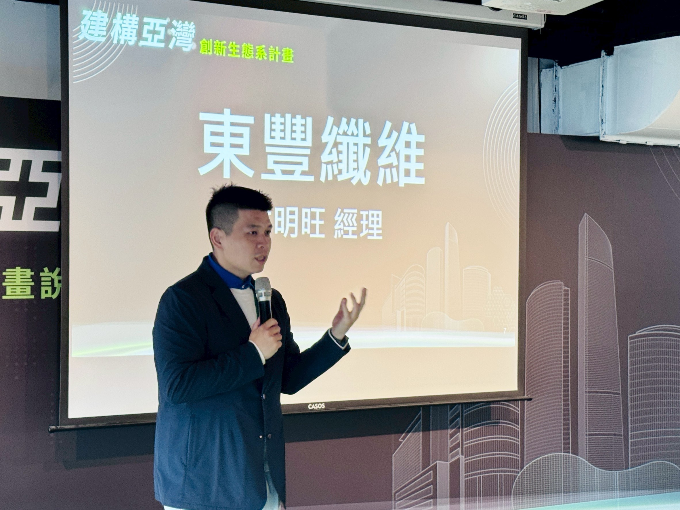 3. 圖三、紡織大廠東豐纖維代表現場分享與新創「聯覺科技」的合作成果,透過3D掃描與數位分身技術,成功優化布料研發流程,展示AI驅動傳統產業升級的實質成效
